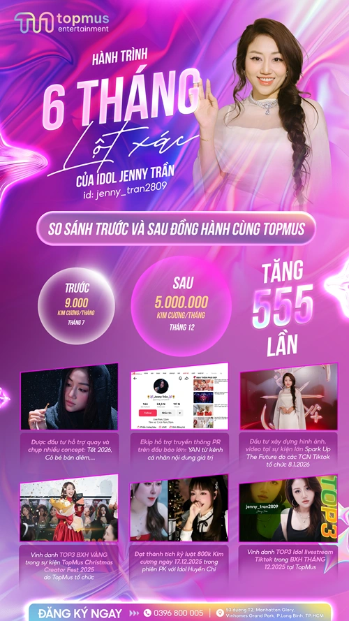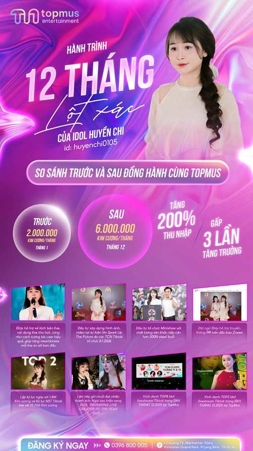 TOPMUS đã đồng hành cùng nhiều Nhà sáng tạo từ những ngày đầu chưa có kinh nghiệm livestream. Thông qua hệ thống đào tạo và hỗ trợ sát sao, nhiều Nhà sáng tạo đã thu hút hàng trăm nghìn người theo dõi mỗi tháng. Đó chính là giá trị mà TOPMUS mang lại cho hành trình phát triển của mỗi Nhà sáng tạo